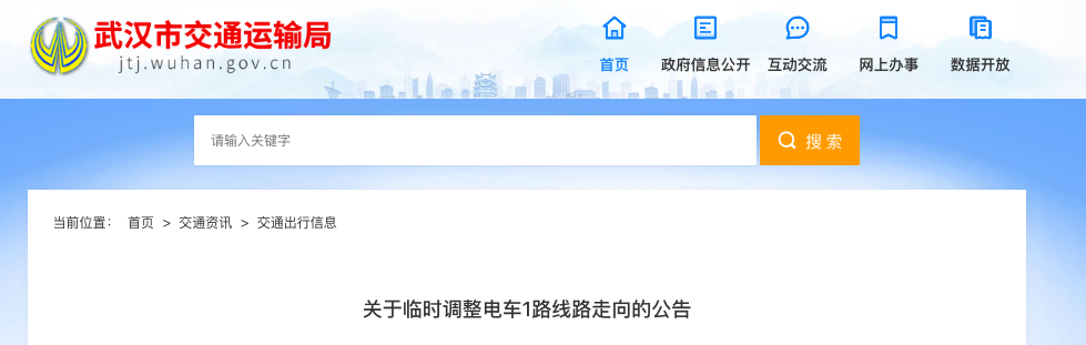鐢变簬姝︽槍鍖烘矙婀栧ぇ閬撴瓕绗涙ˉ杩涜鏀瑰缓宸ョ▼鏂藉伐锛屾姹夎矾閮ㄥ垎璺瀹炴柦浜ら氱鍒讹紝涓烘柟渚垮競姘戝嚭琛岋紝鍗虫棩璧凤紝涓存椂璋冩暣鐢佃溅1璺嚎璺蛋鍚戙