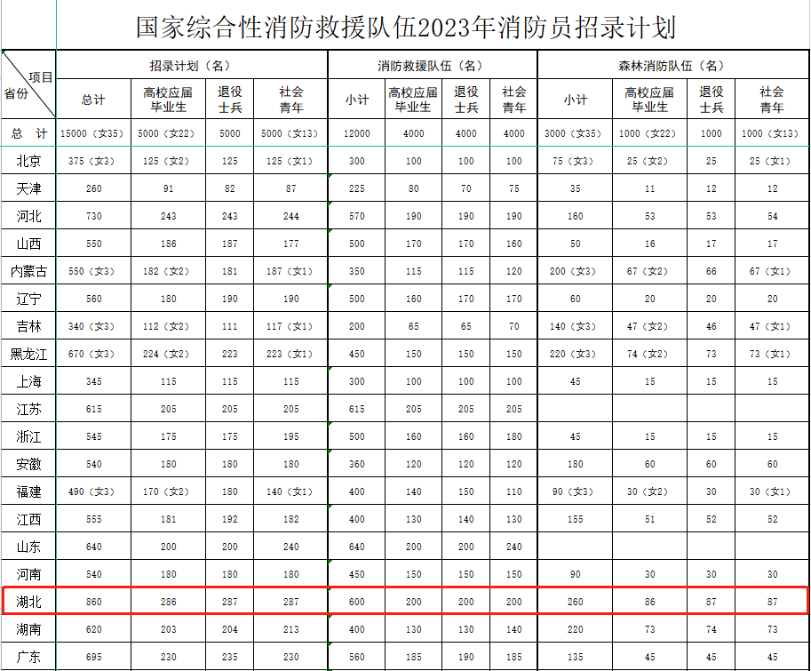 缁忓簲鎬ョ鐞嗛儴銆佷汉鍔涜祫婧愮ぞ浼氫繚闅滈儴銆侀褰瑰啗浜轰簨鍔¢儴鎵瑰噯锛屾娆″浗瀹剁患鍚堟ф秷闃叉晳鎻撮槦浼鍏辨嫑褰曟秷闃插憳15000鍚嶏紙濂虫35鍚嶏級锛屽叾涓細楂樻牎搴斿眾姣曚笟鐢5000鍚嶏紙濂虫22鍚嶏級銆侀褰瑰+鍏5000鍚嶃佺ぞ浼氶潚骞5000鍚嶏紙濂虫13鍚嶏級銆鍏蜂綋鎷涘綍璁″垝瑙侀檮浠1銆
