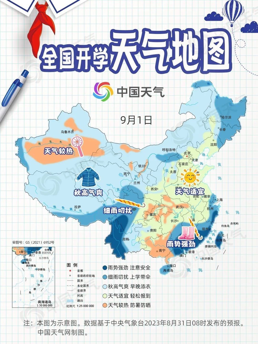 鈥滃皬鍢涘皬鍎块儙锛岃儗鐫閭d功鍖呬笂瀛﹀爞锛屼笉鎬曞お闃虫檼涔熶笉鎬曢偅椋庨洦鐙傗︹︹濇槑澶╋紙9鏈1鏃ワ級灏辨槸涓骞翠竴搴︾殑绉嬪寮瀛︽棩浜嗭紝鍏ㄥ浗澶ч儴鍦板尯鐨勪腑灏忓鐢熼兘灏嗗湪杩欎竴澶╄繋鏉ユ柊鐨勫骞淬傚紑瀛﹀湪鍗筹紝鍚勫湴澶╂皵濡備綍锛熷鈥滃皬绁炲吔鈥濅滑椤哄埄鈥滃綊绗尖濇槸鍚︿細閫犳垚褰卞搷锛熶腑鍥藉ぉ姘旂綉璐村績鎺ㄥ嚭鍏ㄥ浗寮瀛﹀ぉ姘斿湴鍥撅紝涓璧锋潵鐪嬬湅鍝噷澶槼鏅掞紝鍝噷椋庨洦鐙傘