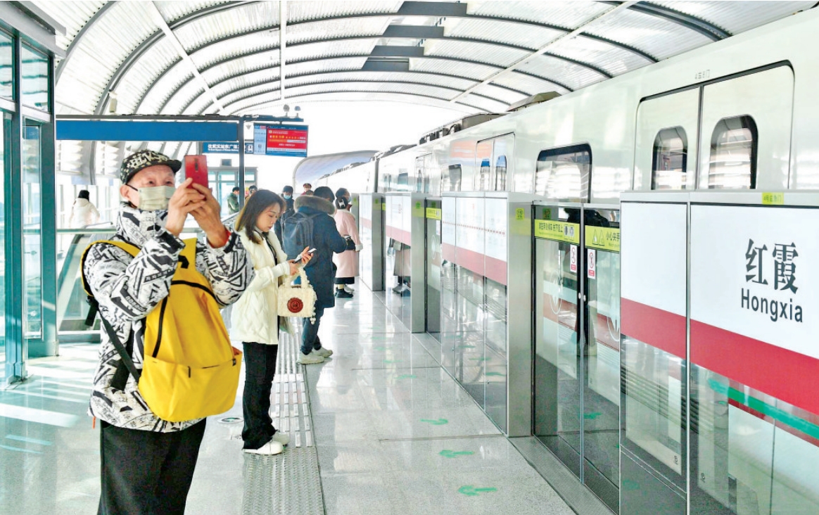 8鏃04鍒嗭紝E20鍒楄溅鍒拌揪绾㈤湠绔欙紝璁拌呬笅杞︼紝鐪嬭绾㈤湠绔欏凡鏈変笉灏戜箻瀹€傜▼纾婃尝瀹朵綇闄勮繎鐨勭埍瀹跺悕鏍″崕鍩庡皬鍖猴紝浠栦竴杈瑰埛鎵嬫満涓杈圭瓑杞︺備氦璋堜腑寰楃煡锛屼粬涓夊勾鍓嶆惉鍒拌繖閲岋紝鍦ㄦ椽灞卞箍鍦洪檮杩戜笂鐝傗滃墠骞达紝5鍙风嚎閫氳溅鍚庯紝鎴戞瘡澶╁潗鍏氦杞﹀埌涓尰鑽ぇ瀛︾珯锛屼箻5鍙风嚎鍒板鍏磋矾绔欙紝鎹箻4鍙风嚎鍒版椽灞卞箍鍦虹珯銆傛垜涓鐩存瘮杈冨叧娉5鍙风嚎璋冩暣宸ョ▼鐨勫缓璁捐繘搴︺傗濅粬璇达紝鏃╀笂寰楃煡鍙互涔樿溅鍚庯紝浠栧氨楠戜簡鍗曡溅鐩存帴鍒扮孩闇炵珯锛屾瘮骞虫椂鍧愬叕浜ゆ崲涔樺湴閾佽嚦灏戣妭鐪15鍒嗛挓銆