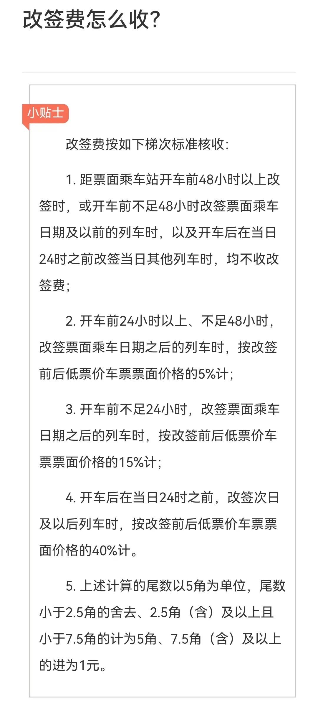 閫氳繃鏌ヨ12306APP鍙戠幇锛岃骞冲彴瀵规敼绛捐垂鐨勬敹鍙栬鍒欐湁鏄庣‘鐨勮瀹氾紝閲囩敤闃舵寮忔敹璐硅鍒欙細