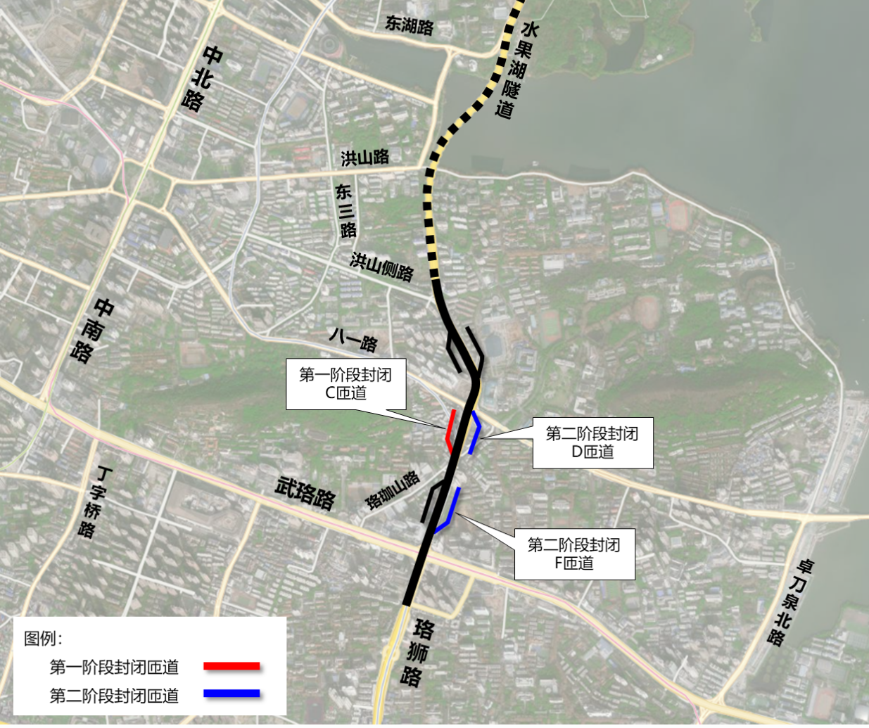 绗簩闃舵灏侀棴鐝炵嫯璺珮鏋禗鍖濋亾锛堢彏鐙矾鍦伴潰灞備笂楂樻灦寰姘存灉婀栭毀閬撴柟鍚戯級銆丗鍖濋亾锛堢彏鐙矾楂樻灦涓嬬彏鐙矾鍦伴潰灞傚線鍏竴璺柟鍚戯級锛屽競姘戝彲閫氳浠ヤ笅绾胯矾缁曡锛