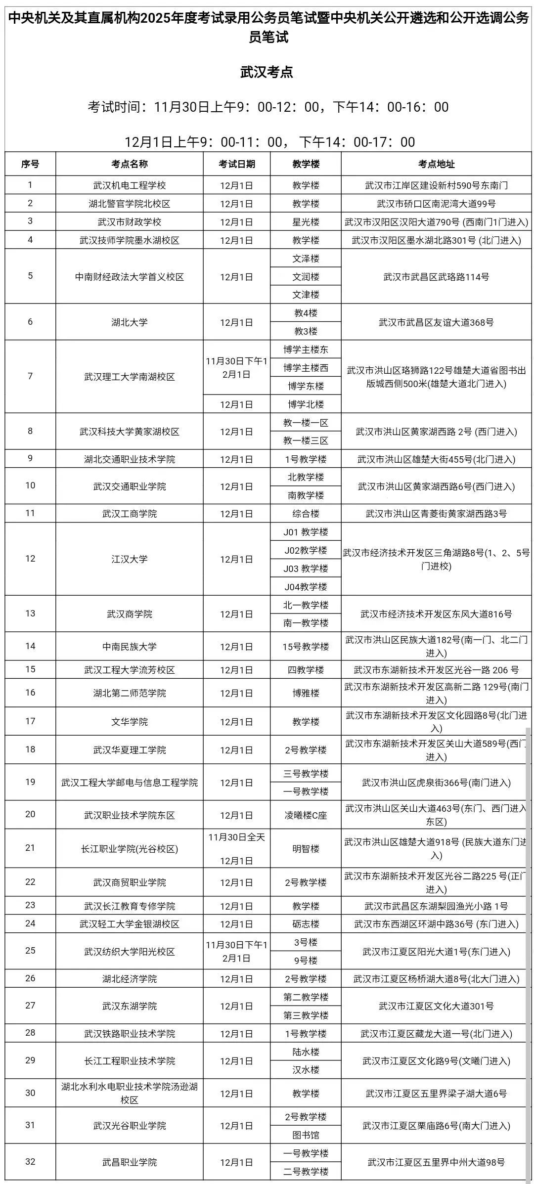 11鏈30鏃ワ紙鍛ㄥ叚锛夈12鏈1鏃ワ紙鍛ㄦ棩锛夛紝姝︽眽甯傚皢涓捐2025骞磋壓鏈被涓撲笟鑰冭瘯缇庢湳涓庤璁$被鐪佺骇缁熻冭冭瘯鍜屼腑澶満鍏冲強鍏剁洿灞炴満鏋2025骞村害鑰冭瘯褰曠敤鍏姟鍛樼瑪璇曟毃涓ぎ鏈哄叧鍏紑閬撮夊拰鍏紑閫夎皟鍏姟鍛樼瑪璇曪紝鍏ㄥ競绾︽湁10.83涓囪冪敓鍙傚姞锛屽叡璁捐冪偣47涓紙璇﹁闄勫浘锛夈