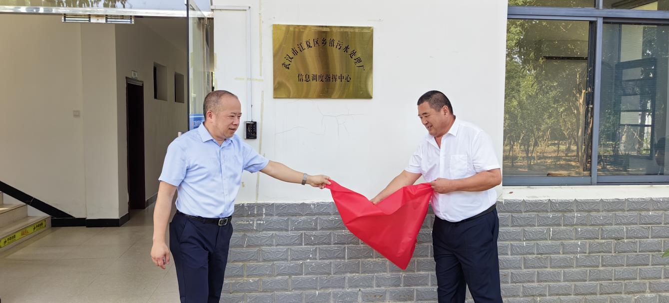 7 月 8 日上午,“武汉市江夏区乡镇污水处理厂信息调度指挥中心” 揭牌仪式在五里界街道锦绣大道毛家畈社区北侧的五里界污水处理厂举行。江夏区城市资产运营管理有限公司党委书记、董事长舒仁操携公司党委班子成员、安全总监、总工程师及相关部门负责人出席仪式,共同见证这一重要时刻。