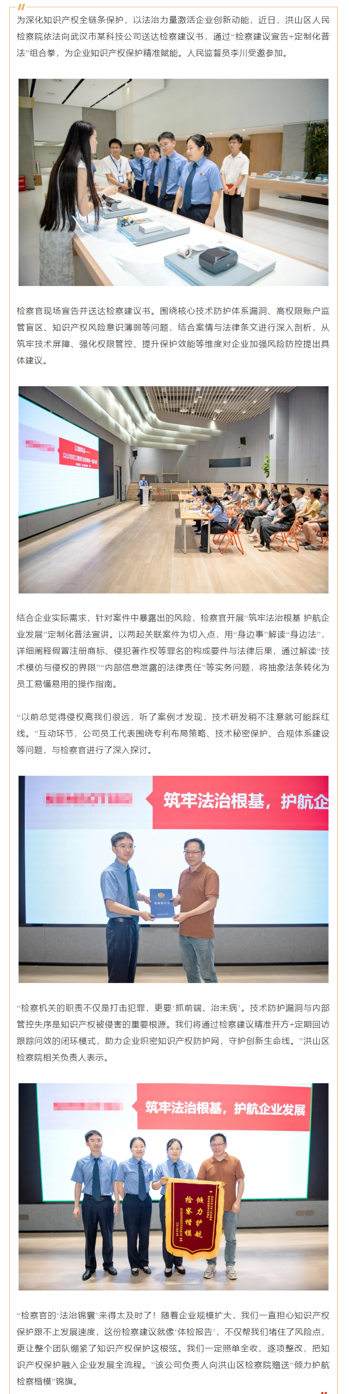 直击企业创新痛点!洪山检察这份“法治锦囊”获赠锦旗