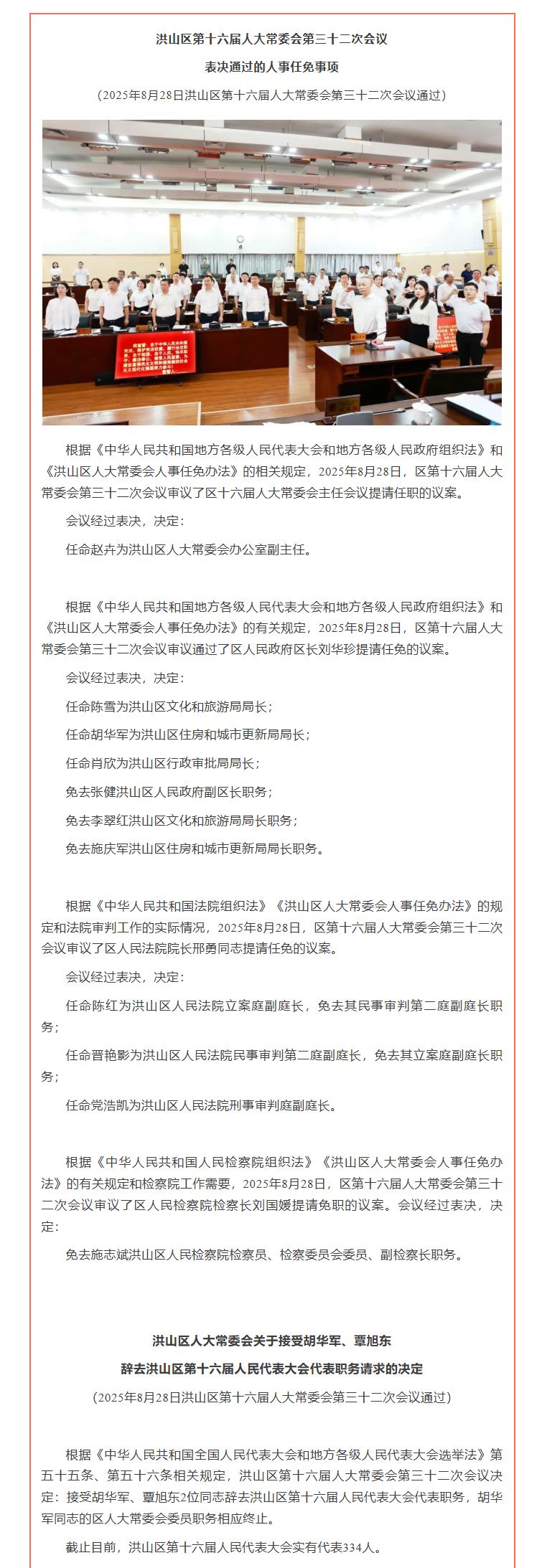 区第十六届人大常委会第三十二次会议表决通过的人事任免事项
