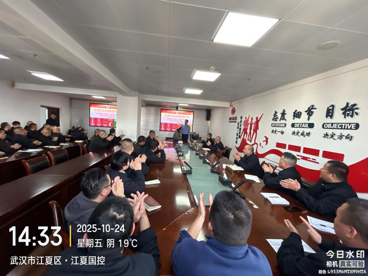 10月24日下午,武汉市江夏区水务发展有限公司工会联合安保科、车队,组织开展职工安全教育培训。公司党委委员、副总经理徐永红,安全总监何述槐,及各科室、部门、厂站所职工、驾驶人员参会。