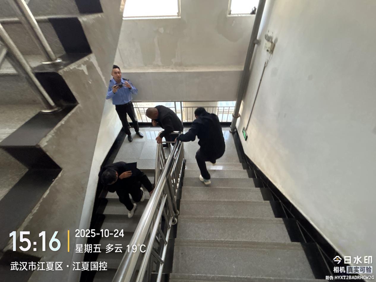 理论培训后,何教官组织全体参训人员开展消防逃生演练。在专业指导下,职工从六楼会议室沿楼梯有序疏散至一楼大厅,以“理论+实践”模式让安全知识落地,帮助职工掌握应急逃生技能。