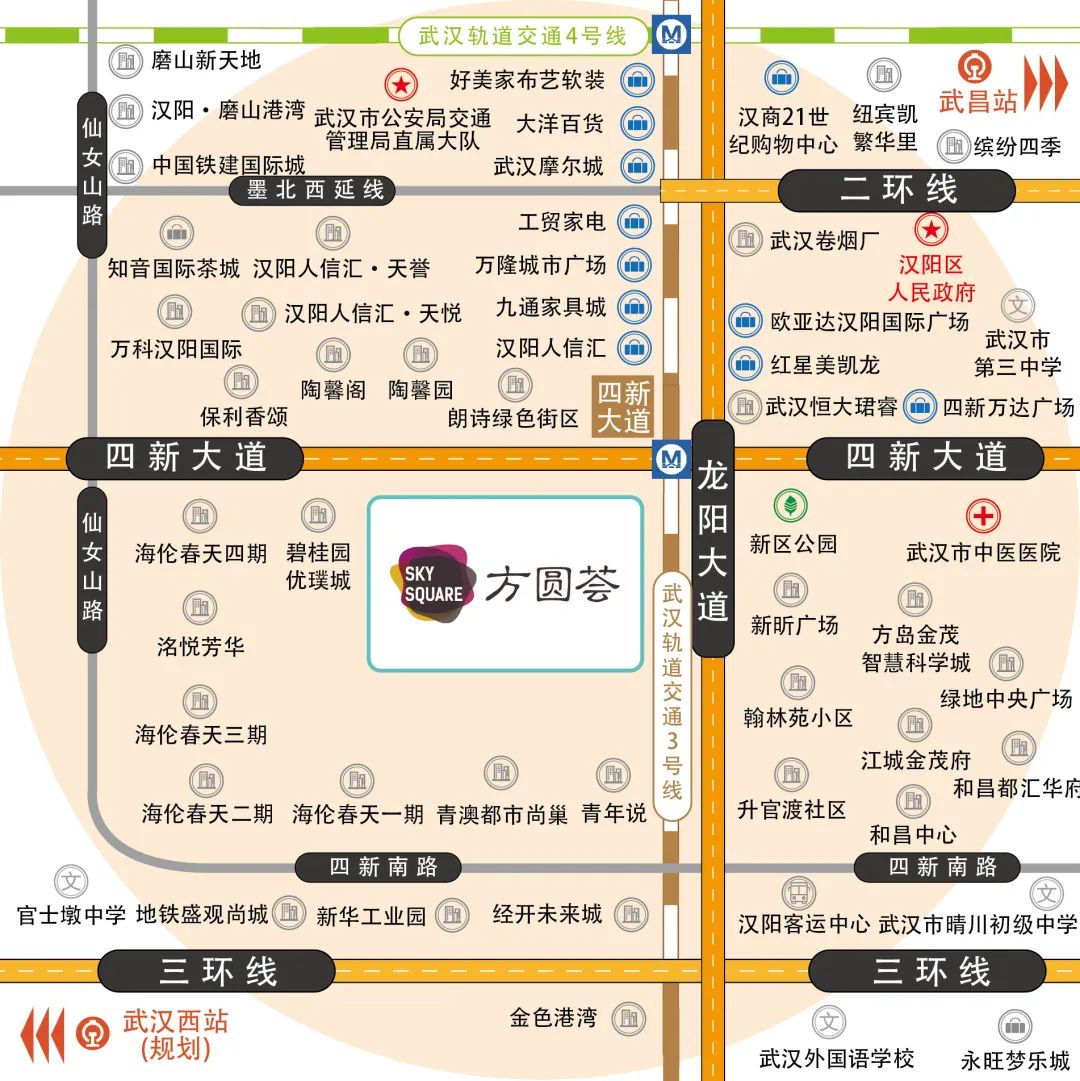 鎹倝锛屾姹夋柟鍦嗚崯鍓嶈韩涓烘姹夋捣瀹佺毊闈╁煄锛屼綅浜庢眽闃冲尯榫欓槼澶ч亾鍜屽洓鏂拌矾浜ゅ弶鍙o紝鎬诲缓绛戦潰绉21.37涓囥帯锛屽湴涓婂洓灞傘佸湴涓嬩竴灞傘傞」鐩敼閫犲悗瀹氫綅涓洪泦绀句氦銆佽喘鐗┿侀楗佹枃鍖栥佸ū涔愩佷翰瀛愮瓑涓轰竴浣撶殑瀹跺涵浼橀夌敓娲讳腑蹇冦